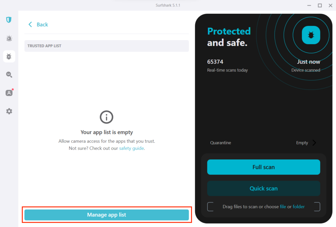 - Open the Surfshark application and navigate to the Antivirus tab.