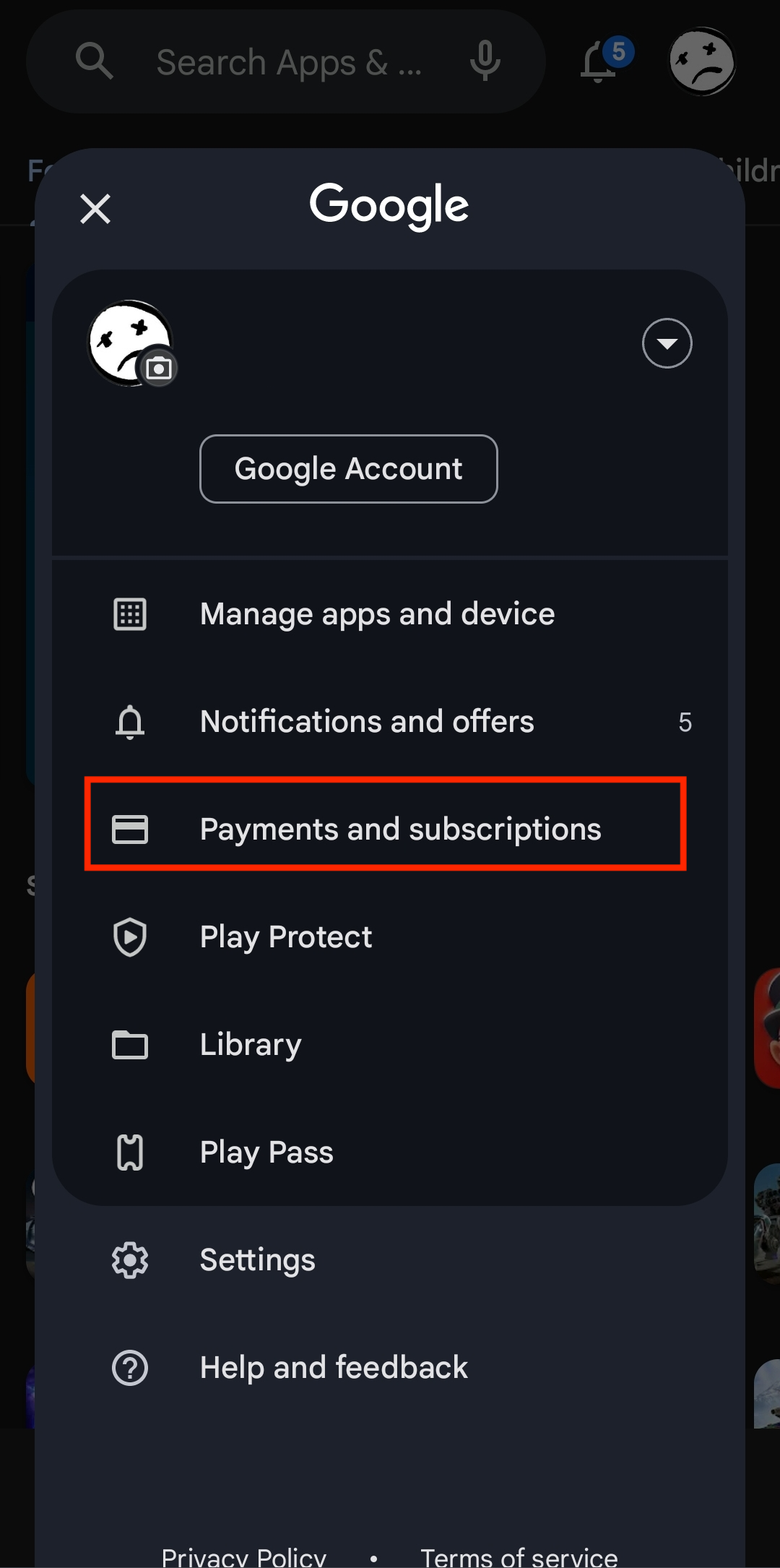 - Tap on Subscriptions, locate the Surfshark subscription and tap resume.