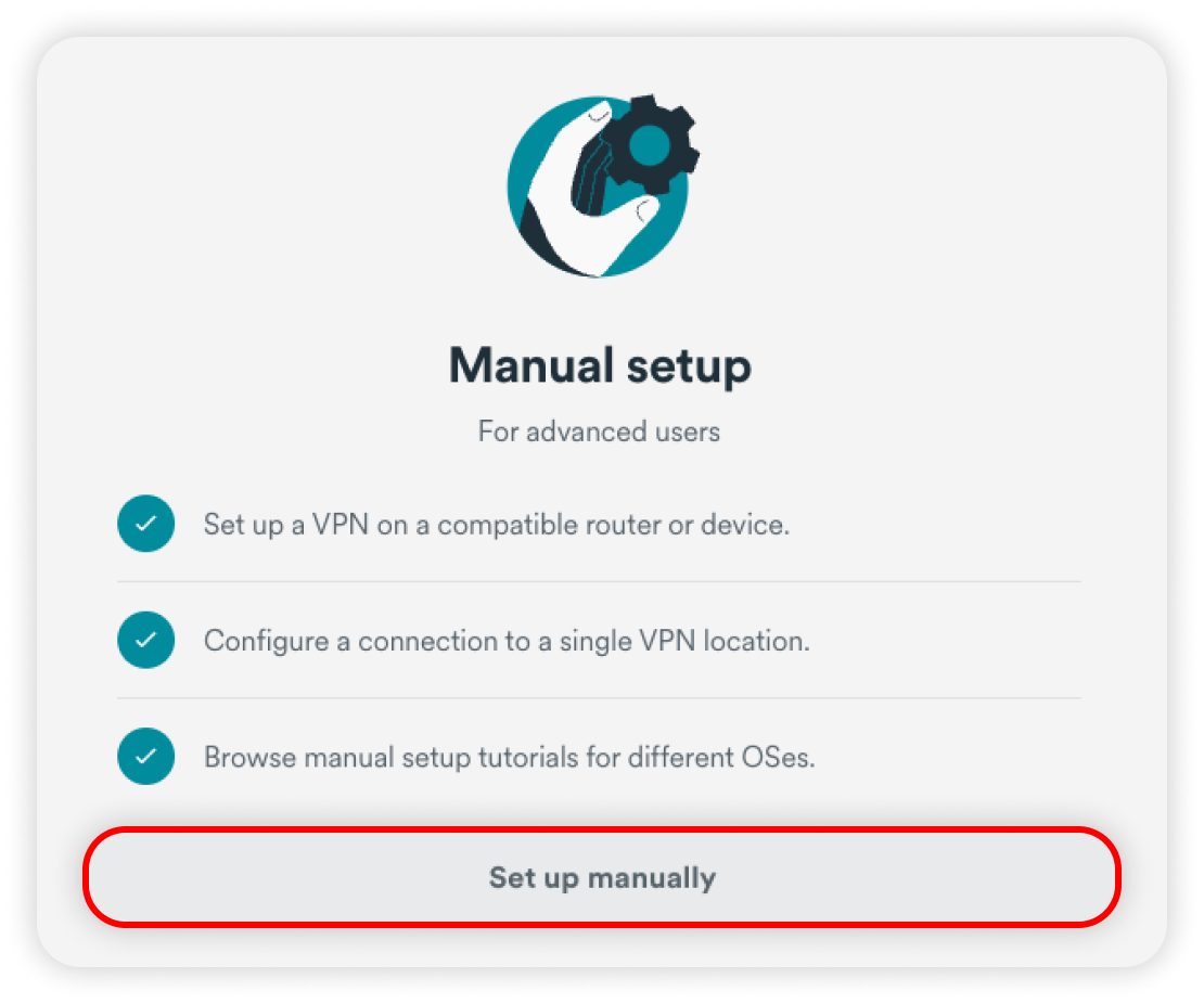 Before setting up OpenVPN, you will need to obtain the credentials for the manual setup and select a server to connect to.