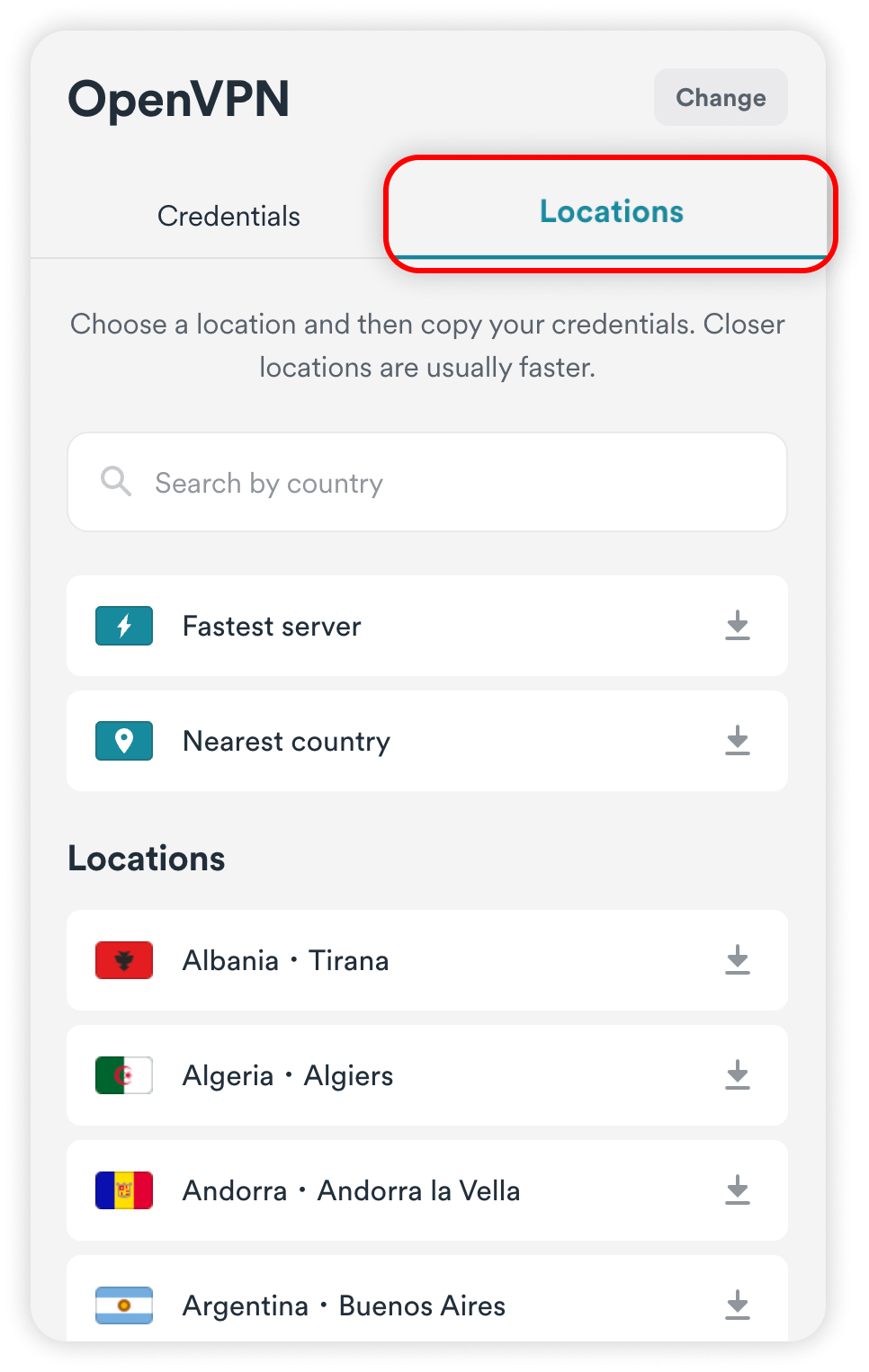 Head to the Locations tab and locate the server that you wish to connect to.