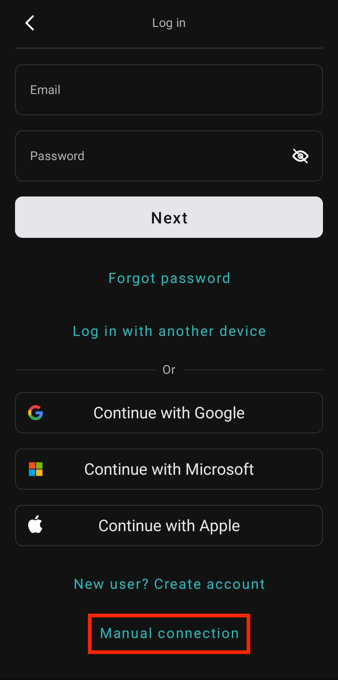 1. Open the Surfshark app on your Android device and tap on Manual connection in the login screen.