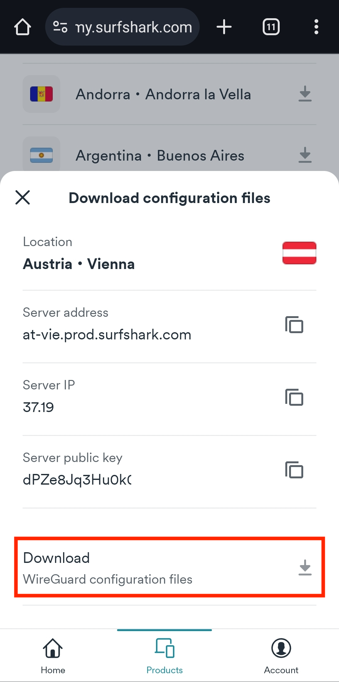 9. Select a location of your choice, tap on it, and download the WireGuard configuration files.
