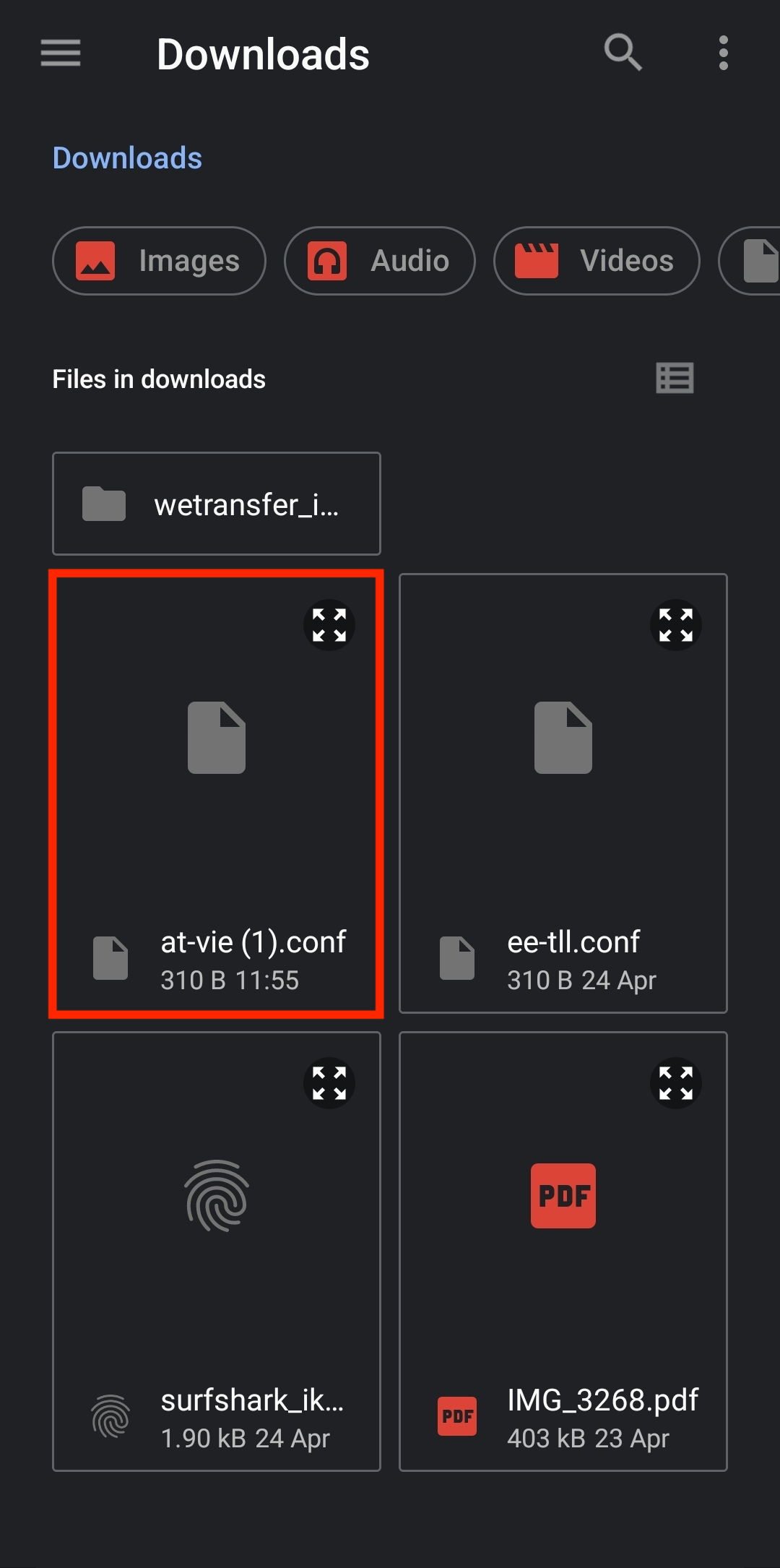11. Locate the configuration file you have downloaded and select it. By default, it ends up in your device's Downloads folder.