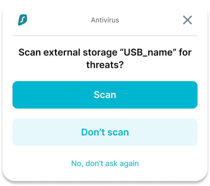 In this article, you will learn how to use Surfshark's External storage scans feature on your Windows or macOS device.