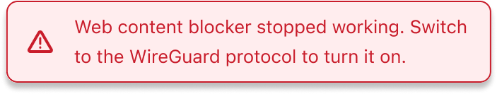 Try restarting the web content blocker service while connected to the VPN with the WireGuard® protocol.