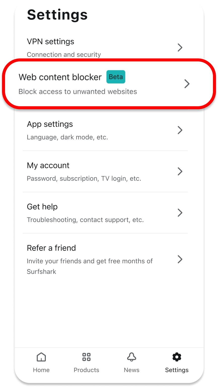 Set up and use the Surfshark web content blocker feature