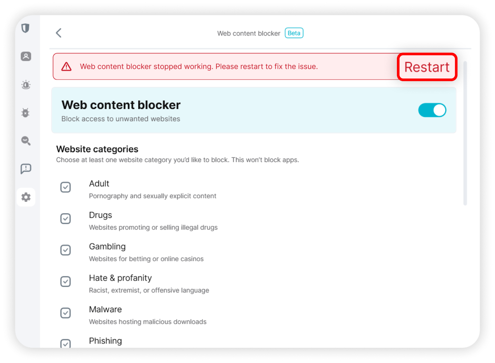 If the web content blocker isn’t working as expected on macOS, try the troubleshooting steps below to resolve the most common issues.
