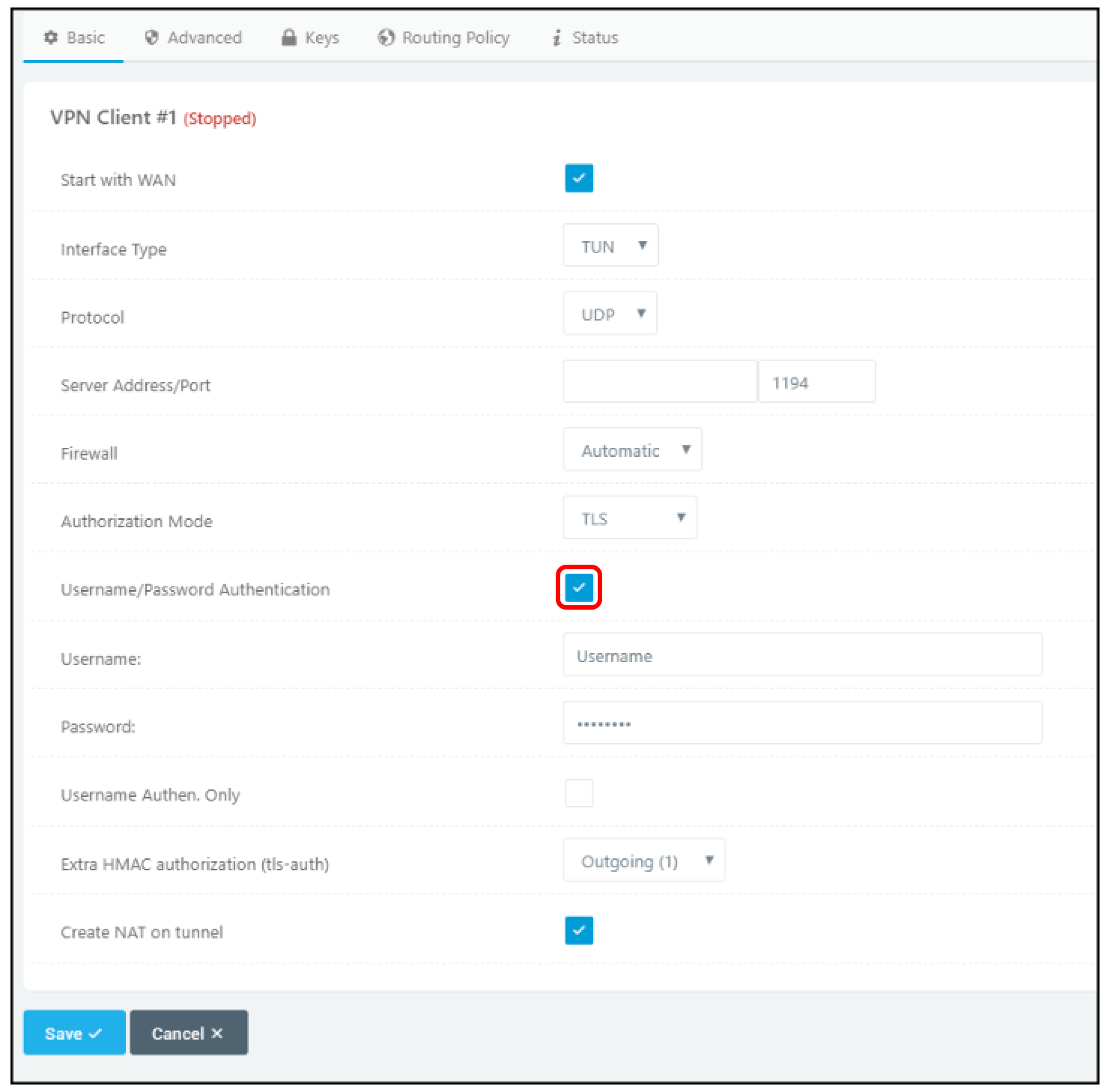 Log into your Tomato router using a browser. Open the VPN > OpenVPN Client tab.