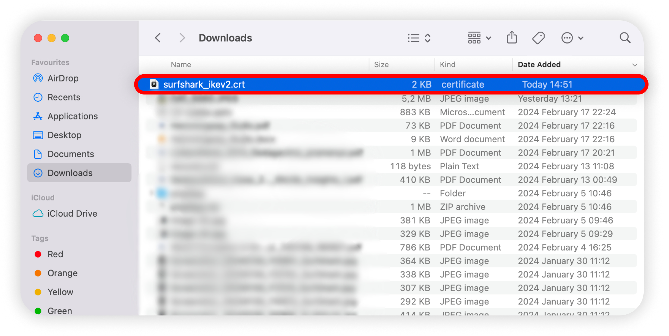 NOTE: If you’re unable to locate the certificate in Keychain Access, drag the certificate file directly from your Downloads folder into the Keychain Access window.