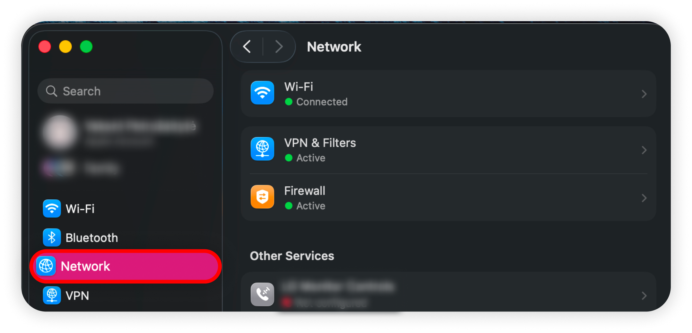 2. Click Network in the left‑hand sidebar: