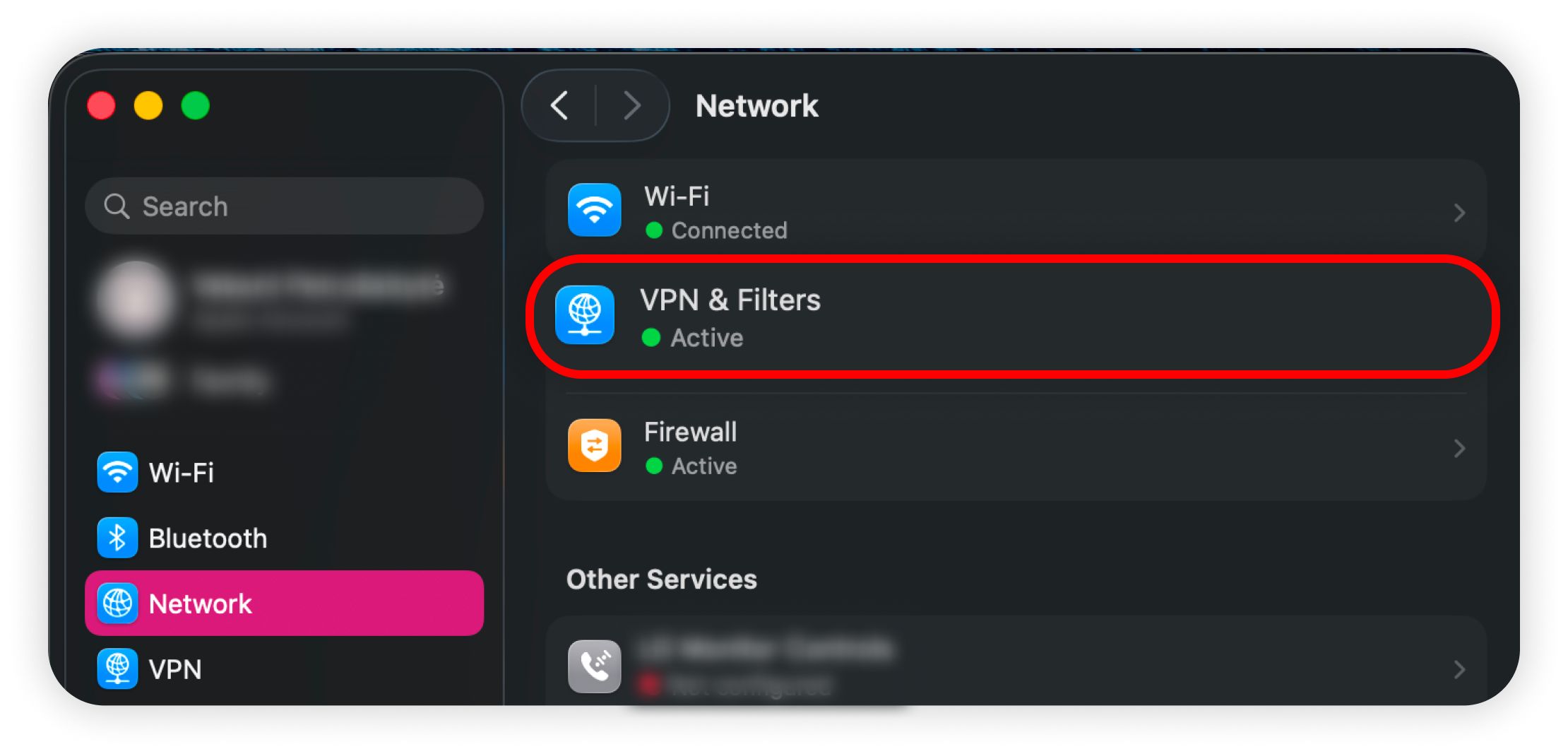 3. Click VPN & Filters: