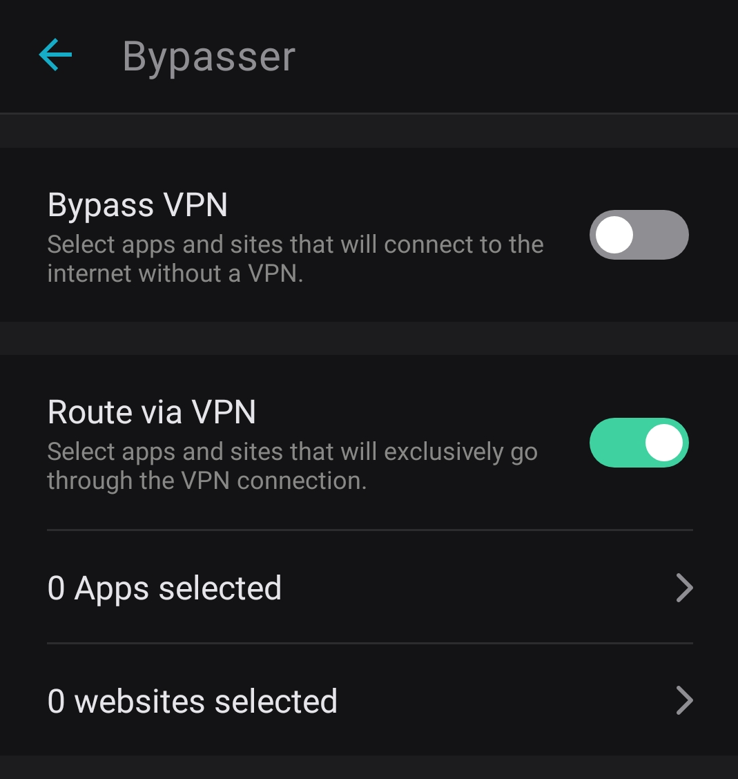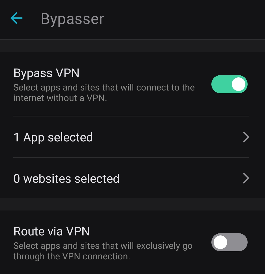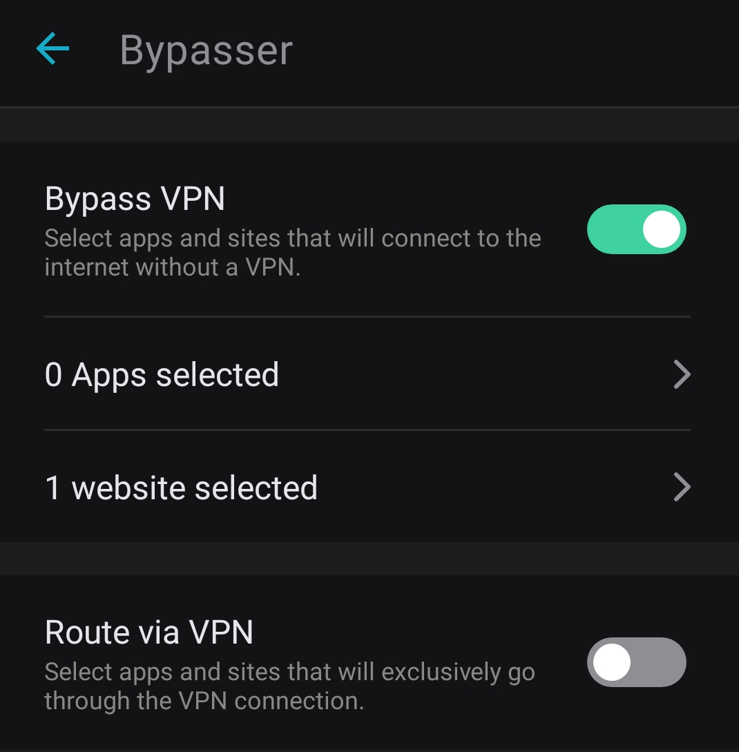 As for Route via VPN, the process is identical. Just enable Route via VPN instead of Bypass VPN and add your applications or websites to the list.