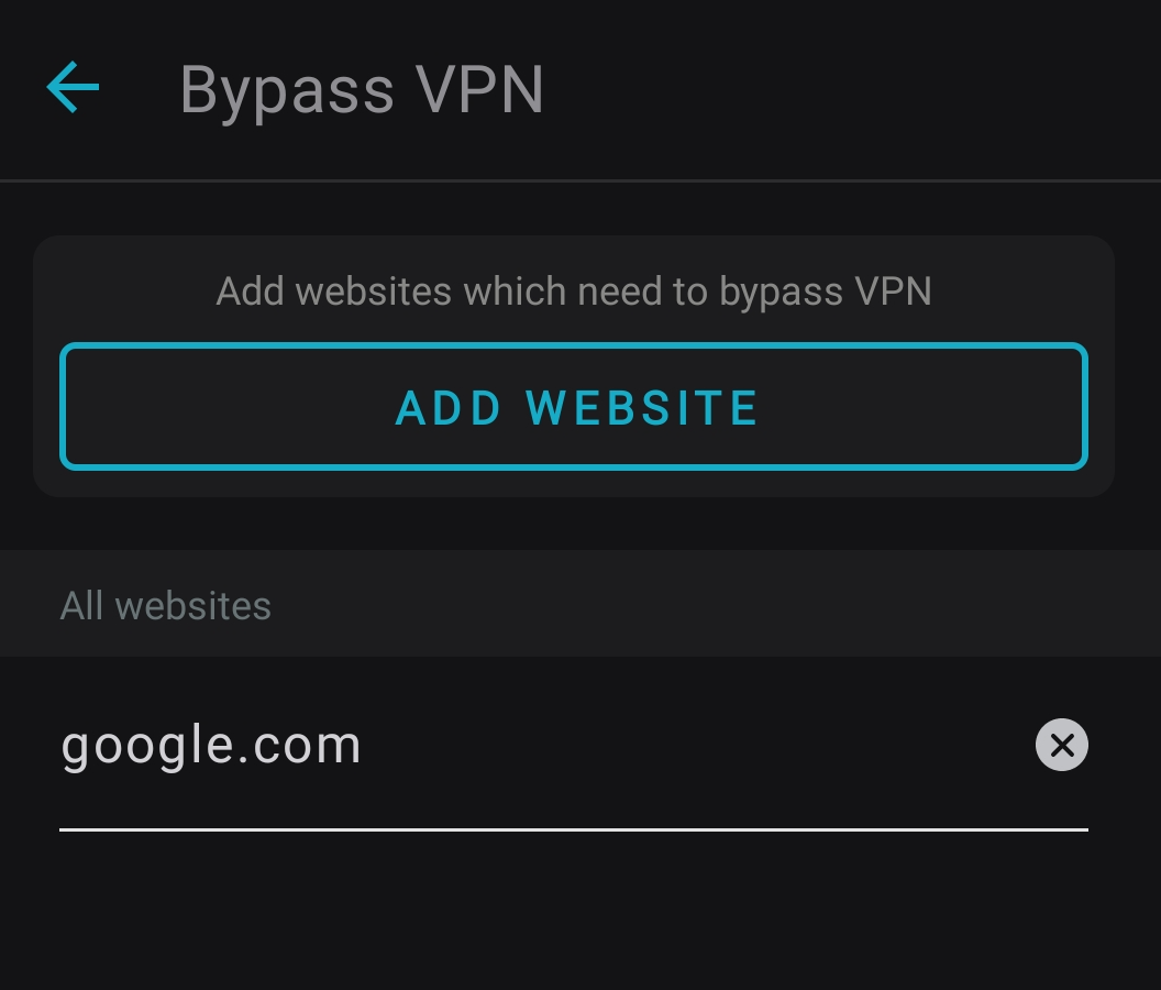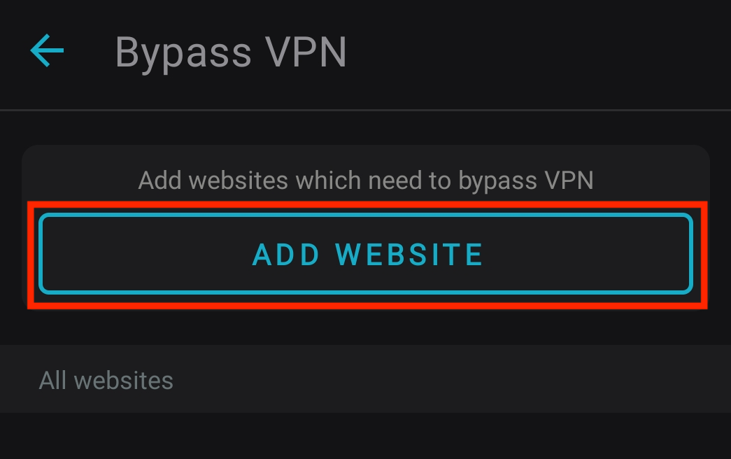 1. To select websites that will bypass the VPN, tap on 0 websites selected.