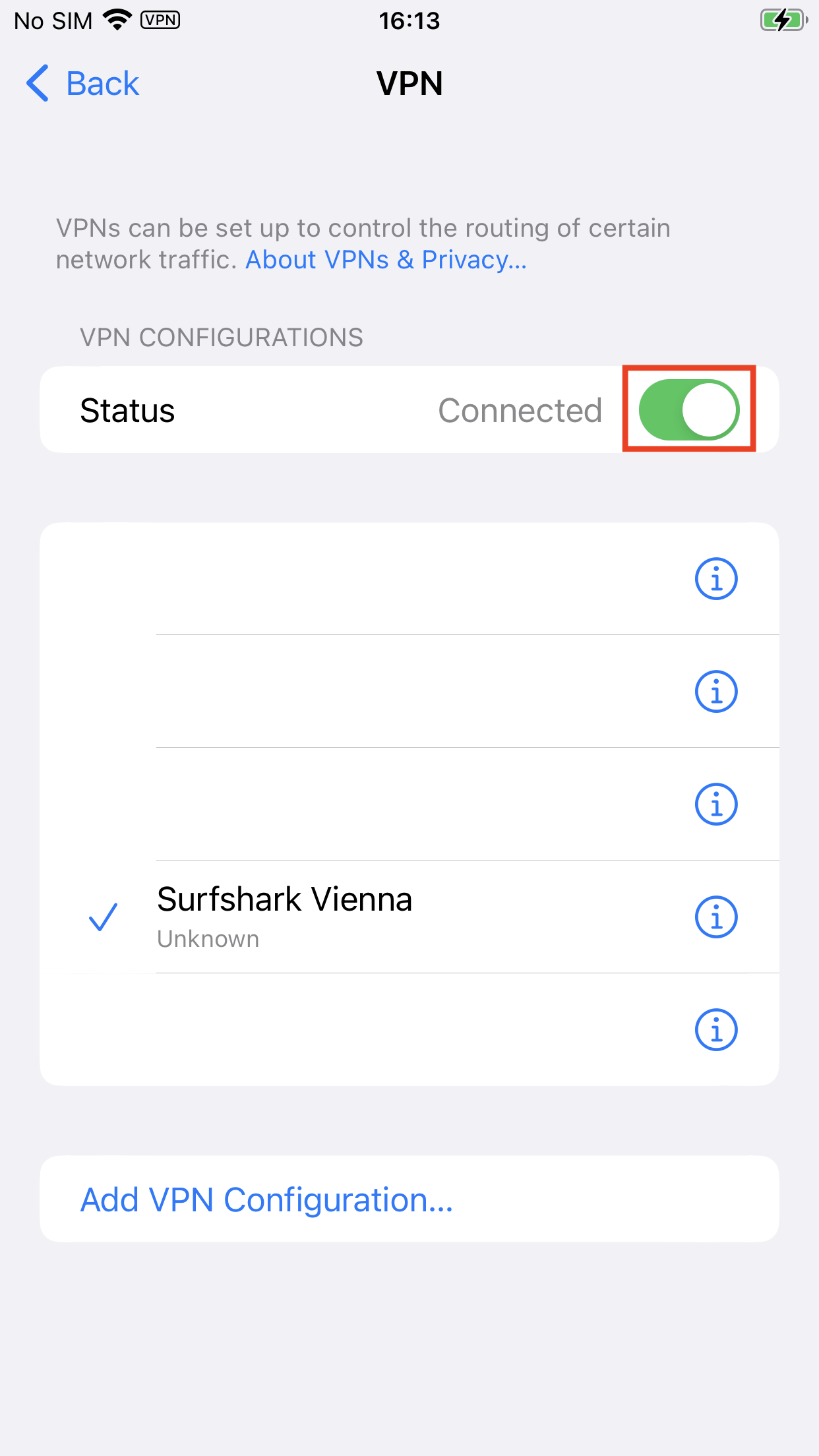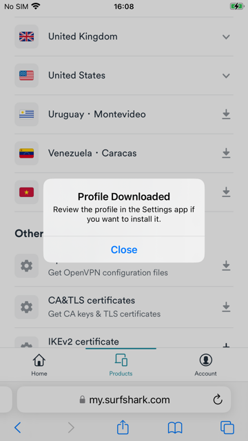 This is an alternative way of connecting to Surfshark servers that will come in handy if the Surfshark VPN app can not be installed on your iOS or it does not perform as expected.