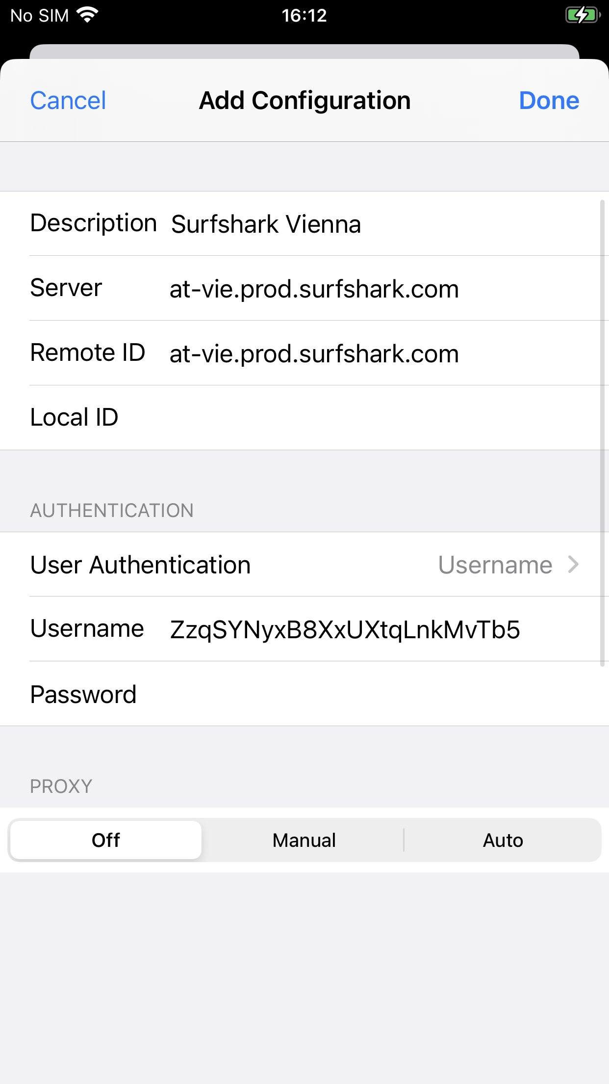 Username: Your Surfshark service username. Refer to the Get your credentials part of this article.