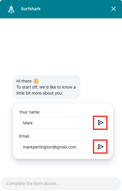 2. Fill in your Name and Email fields. Once done, click both of the buttons to confirm the information.