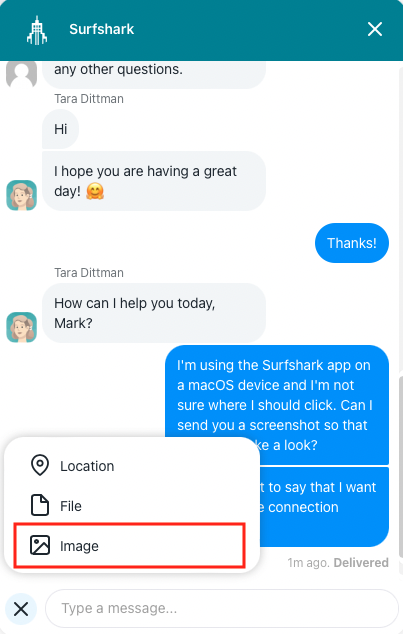 6. This will send the image to the Live Chat. After you send the screenshot, our Customer Success agent will look into your issue and help you solve it.