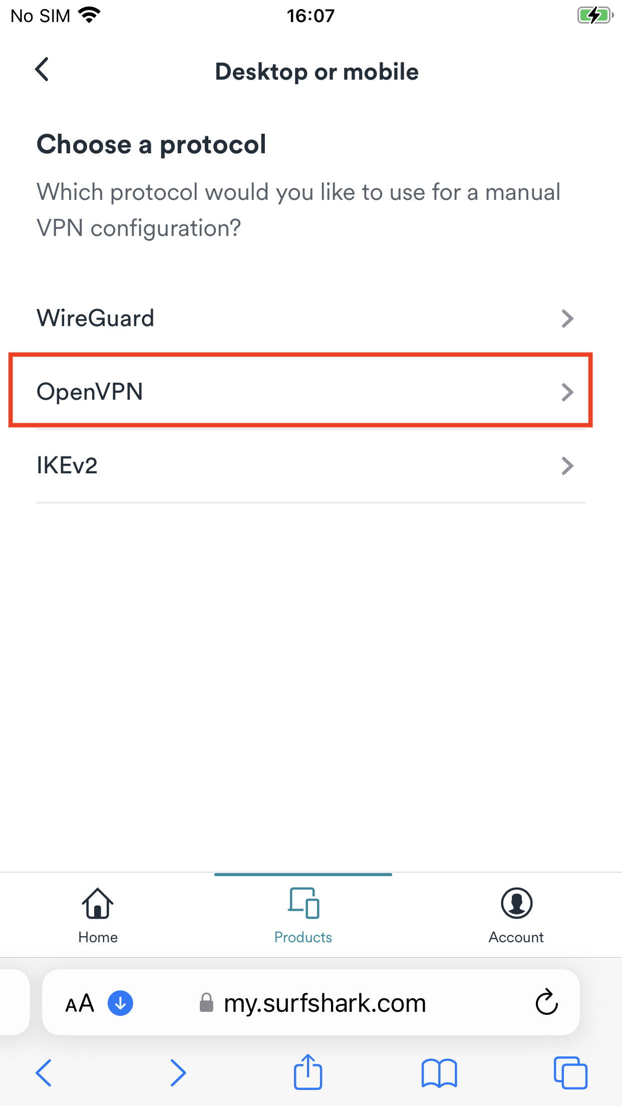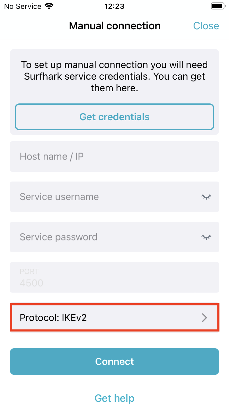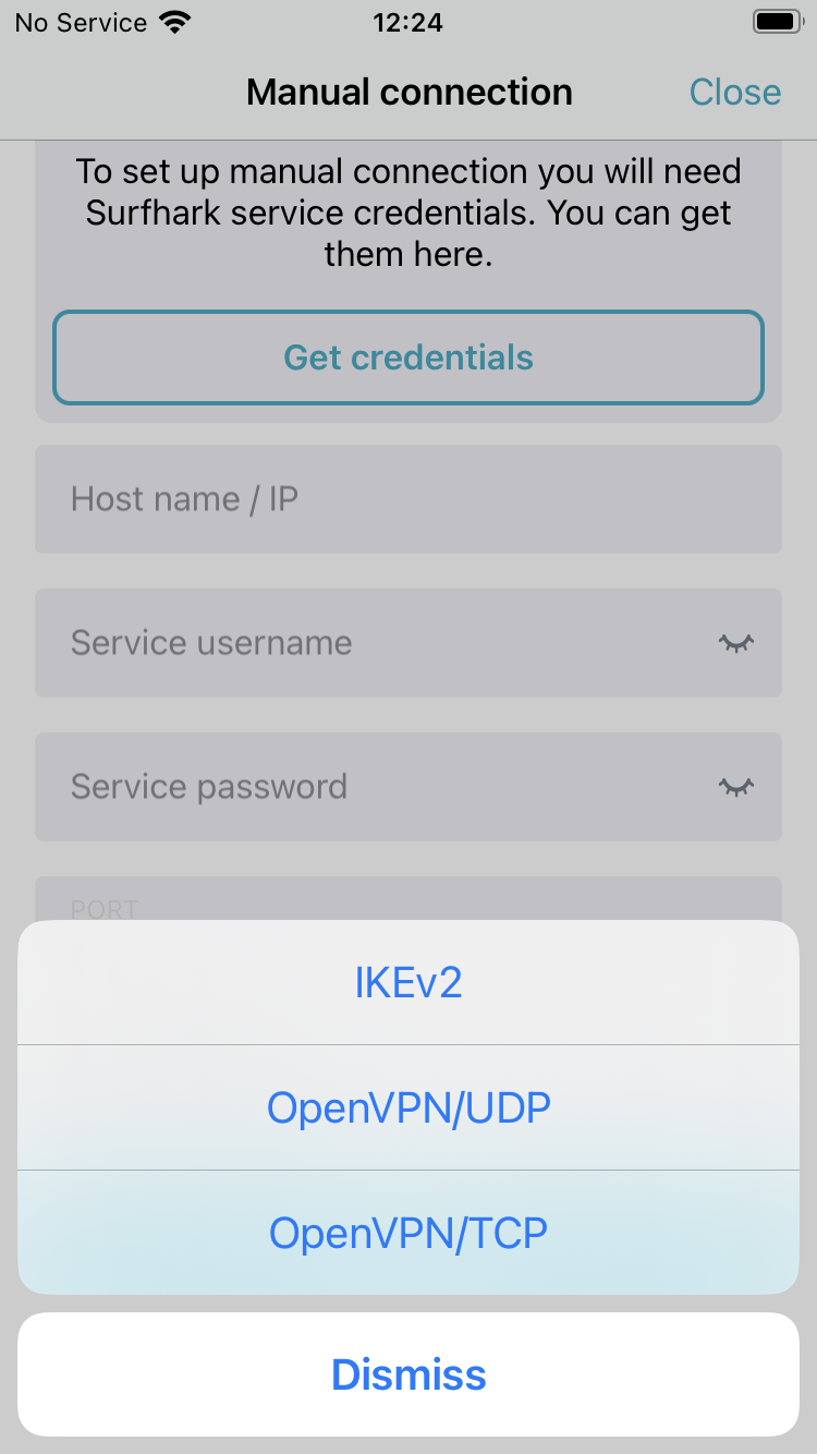 Configure the manual connection using the Surfshark app