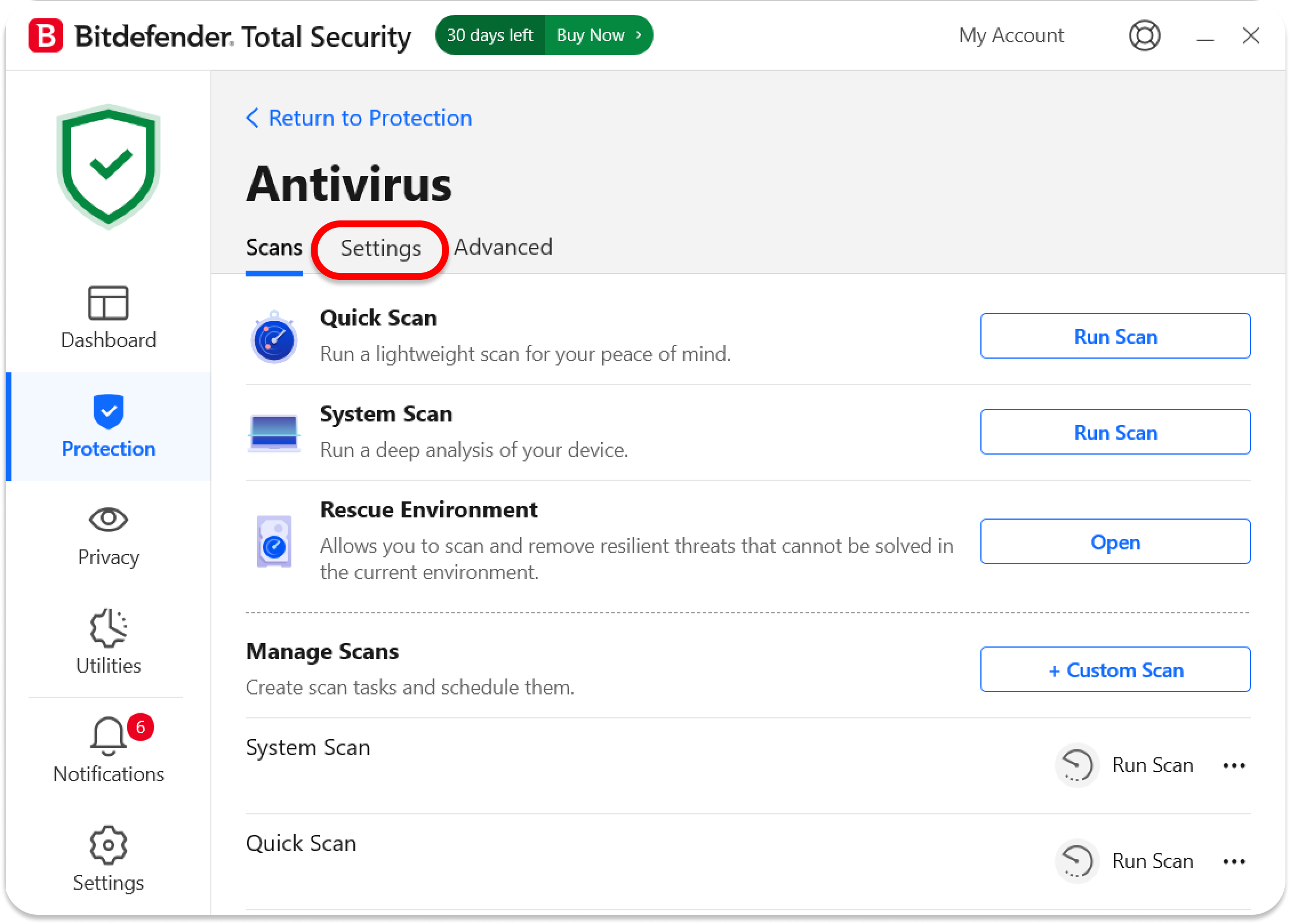 1. Open the BitDefender application and go to the Protection tab on the left side of the app.
