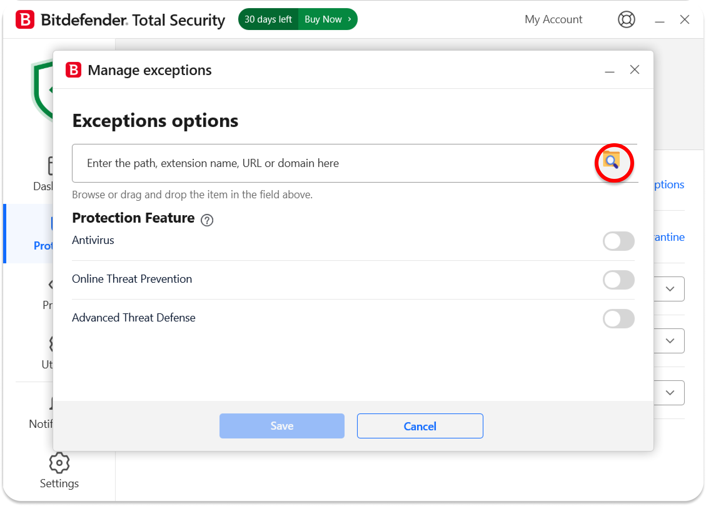 To make an exception for Surfshark in BitDefender antivirus settings, follow these steps: