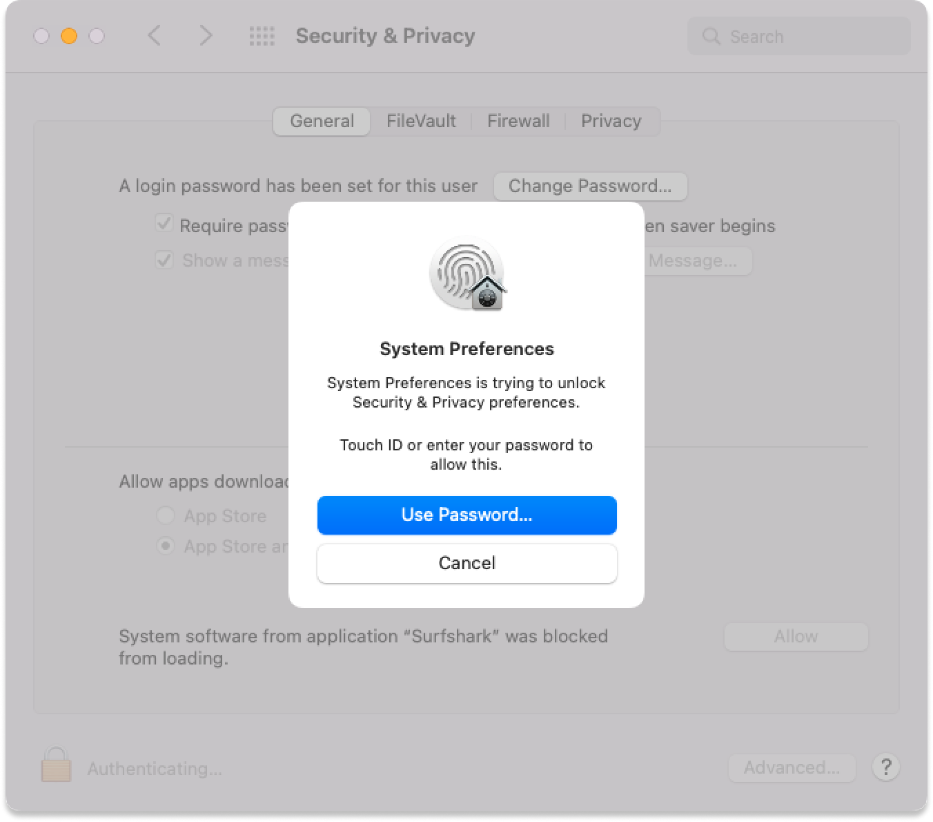 Authenticate using your Mac password or Touch ID:
