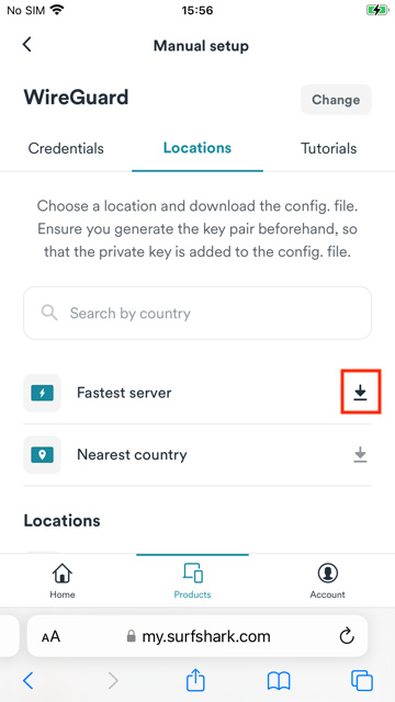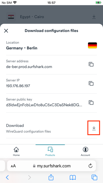 - Open Safari or any browser on your iOS device, and go to Surfshark's login page. Tap Products > VPN > Manual setup > Desktop or mobile > WireGuard