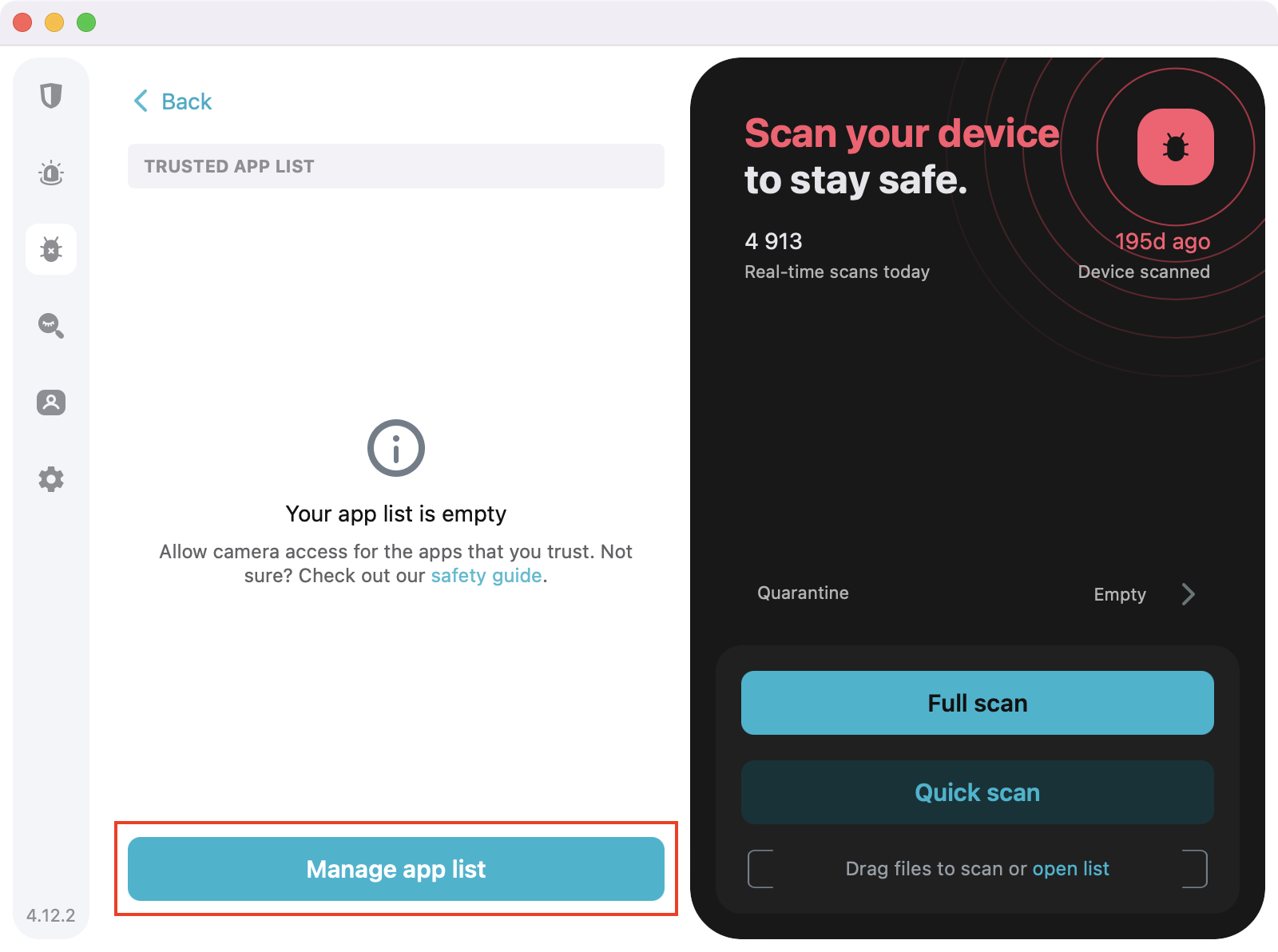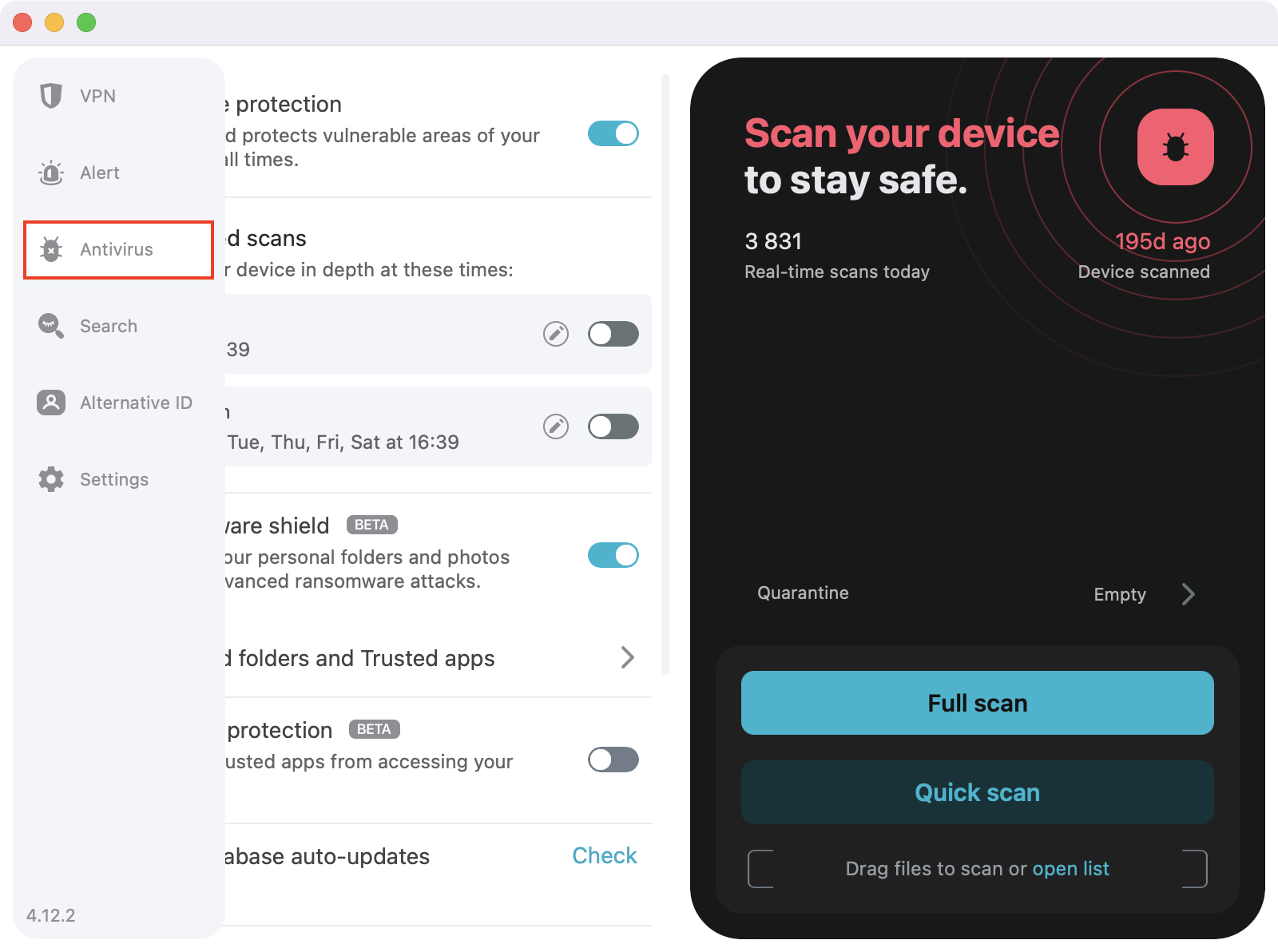 - Open the Surfshark application and navigate to the Antivirus tab.